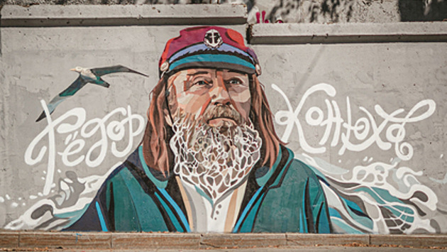 Жители Владивостока нарисовали граффити с Федором Конюховым