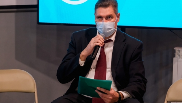Начальник контрольного управления аппарата губернатора Волгоградской области Антон Безруков на брифинге оперштаба новых ограничительных мерах, которые будут действовать в регионе с 18 октября.