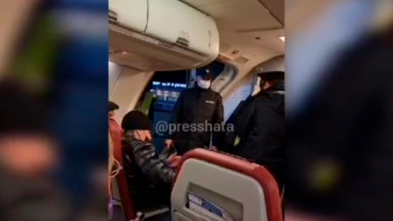 За дебош и ругань матом с рейса Оренбург — Москва сняли двух пассажиров, находившихся в состоянии сильного алкогольного опьянения. Видеозапись с места инцидента опубликовал Telegram-канал «Пресс-Хата».