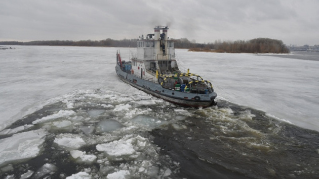 На Рождественской воложке ледокол-буксир "Портовый-13" начал ломать лёд