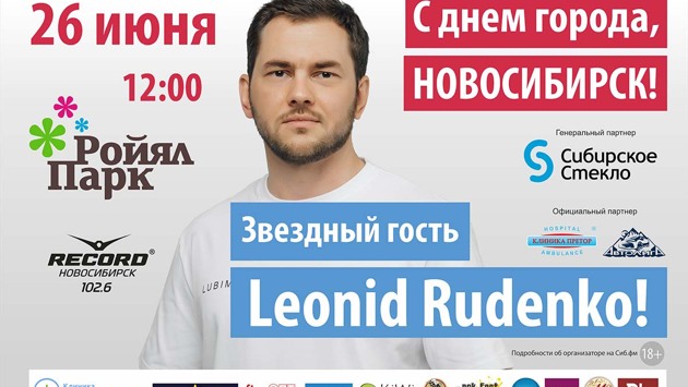 Один из самых популярных диджеев России DJ Leonid Rudenko выступит на праздновании Дня города в Новосибирске 26 июня. Он станет приглашенным гостем большого праздничного концерта около ТРК «Роял Парк», который организует Радио Рекорд.