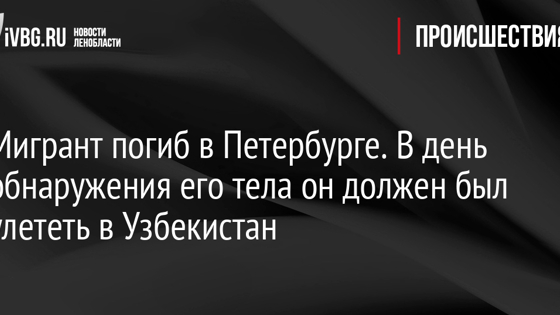 Мигрант погиб в Петербурге. В день обнаружения его тела он должен был улететь в Узбекистан