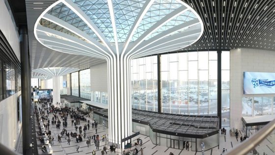 "Это какой-то космос!" - первых пассажиров, прибывших рейсами внутренних воздушных линий, терминал впечатлил естественным освещением, которое обеспечивают стеклянные фасады и потолок центрального атриума, а также элегантными колоннами в виде гигантских "турбин" с вмонтированным светодиодами.