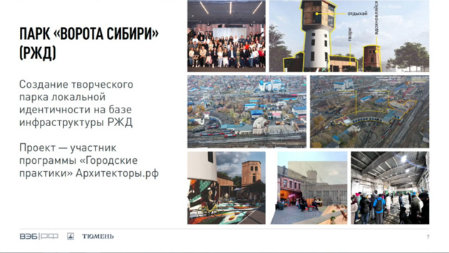 «С представителями РЖД мы начали взаимодействовать по ряду проектов, которые позволят вдохнуть новую жизнь в исторические здания, в том числе промышленной архитектуры, рядом с вокзалом», — заявил Кухарук на трансляции госкорпорации «ВЭБ.РФ». Кроме проекта «Ворота Сибири» в качестве важных проектов по формированию креативной городской среды он выделил также промышленный технопарк «ДСК 500», пешеходную улицу Дзержинского и событийный рынок «Алебашево».