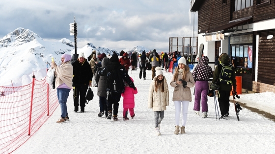 Российские туристы на курорте "Красная Поляна" в Сочи устали стоять в очереди на подъемник и отправились в гору пешком. Соответствующий ролик появился в социальных сетях.