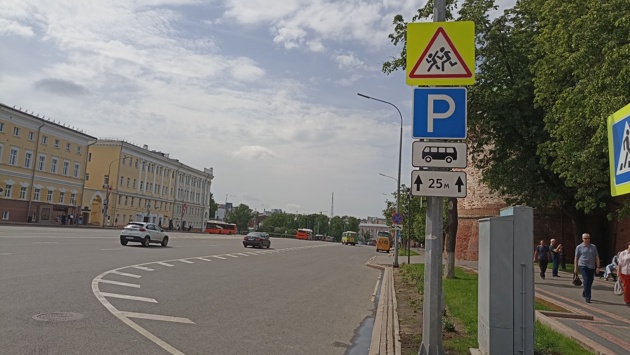 Теперь автобусы смогут парковаться на участке от Георгиевской до Дмитриевской башни. Там установлено шесть дорожных знаков «Парковка» и «Вид транспортного средства — автобус», а под знаками, запрещающими остановку, установлены три таблички «кроме вида транспортного средства», разрешающие парковку автобусам. Таким образом, количество парковок для туристических автобусов на центральной площади Нижнего Новгорода выросло с 4 до 26.