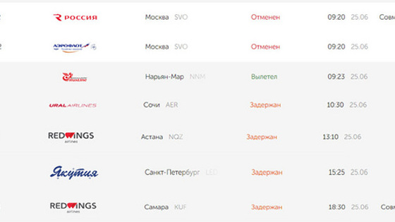 «Рейсы в Сочи, Астану, Санкт-Петербург и Самару из Екатеринбурга задержаны. Также были отменены вылеты двух самолетов в Москву», — следует из данных на сайте Кольцово.