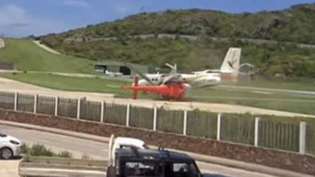 Самолет авиакомпании Air Antilles Express врезался в вертолет во время посадки в аэропорту на острове Сен-Бартелеми в Карибском море и попал на видео. Ролик публикует Telegram-канал AviaNews.