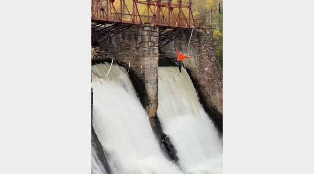 Российский экстремал на 20-метровой высоте прошел по канату над ГЭС в Уфе